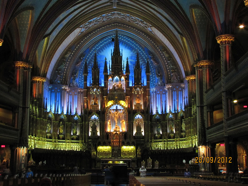 Билет стоил 20 долларов, и собор был почти полным. Выдавали наушники с возможностью выбора между английским, французским, испанским и еще каким-то языками. Когда показывали видео - у каждого в наушниках играл именно его язык, согласованный по времени с видео - должен сказать, меня впечатлила техническая сторона. Зал был завешан белыми экранами - одним большим спереди, тремя треугольными вверху под потолком и еще тремя треугольными справа и слева - казалось, что ты сидишь в корабле, а вокруг тебя развеваются паруса. На этих экранах и шел фильм - краткая историческая справка о создании и постройке собора, с простенькими актерами и забавной игрой. Затем экраны ушли все до единого, и коротко было представлено убранство собора, а затем минут пять длилось само световое шоу, довольно красивое и впечатляющее. Во всяком случае, те, кто это делал, действительно постарались и сделали все возможное. К тому же сам собор внутри исключительно красив.